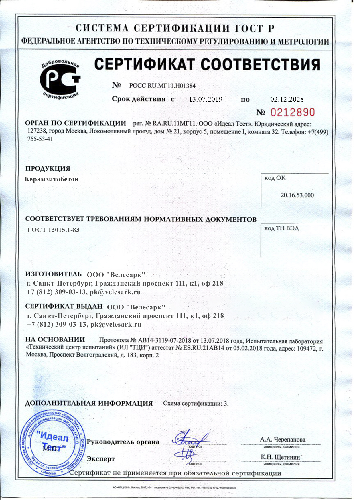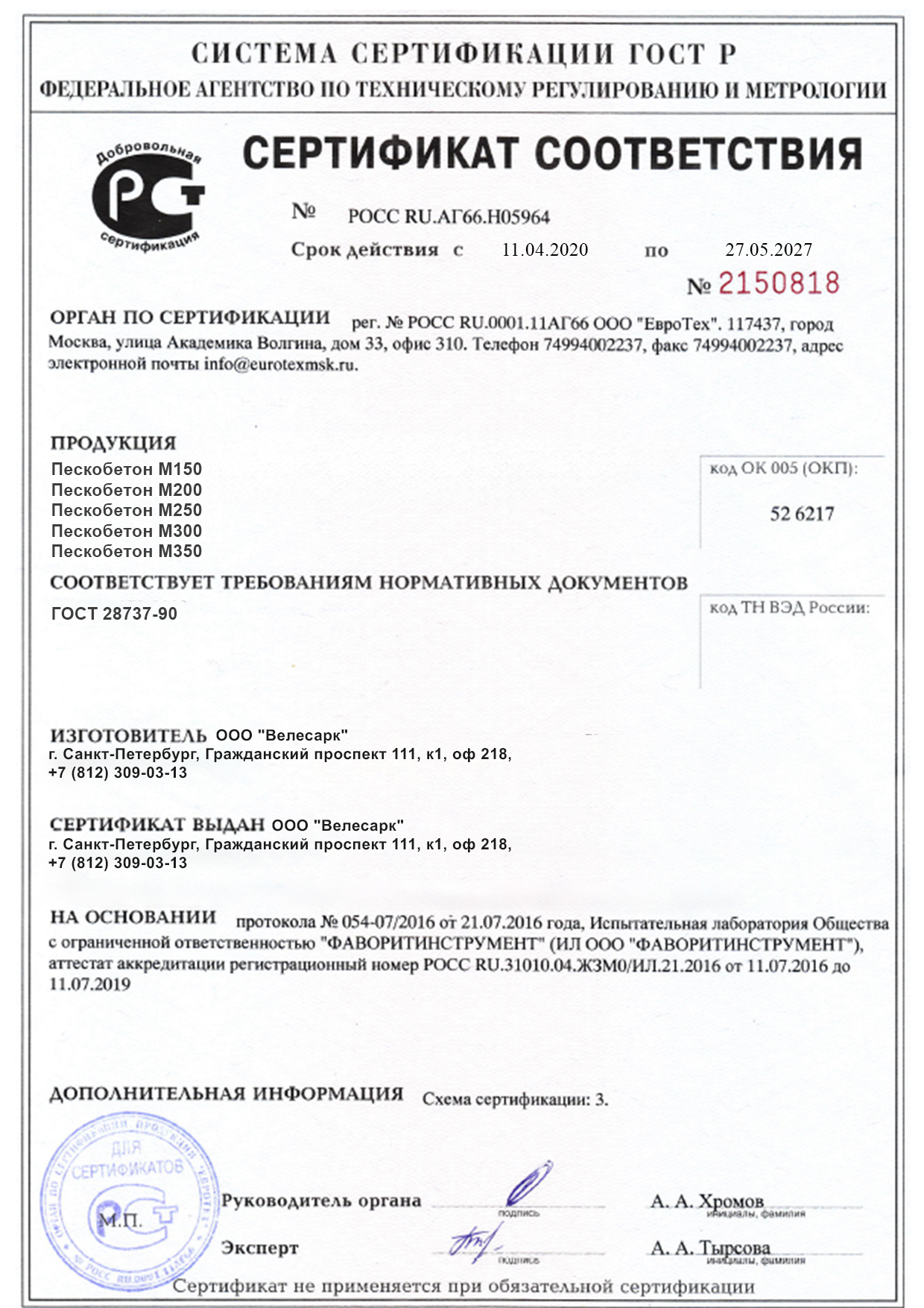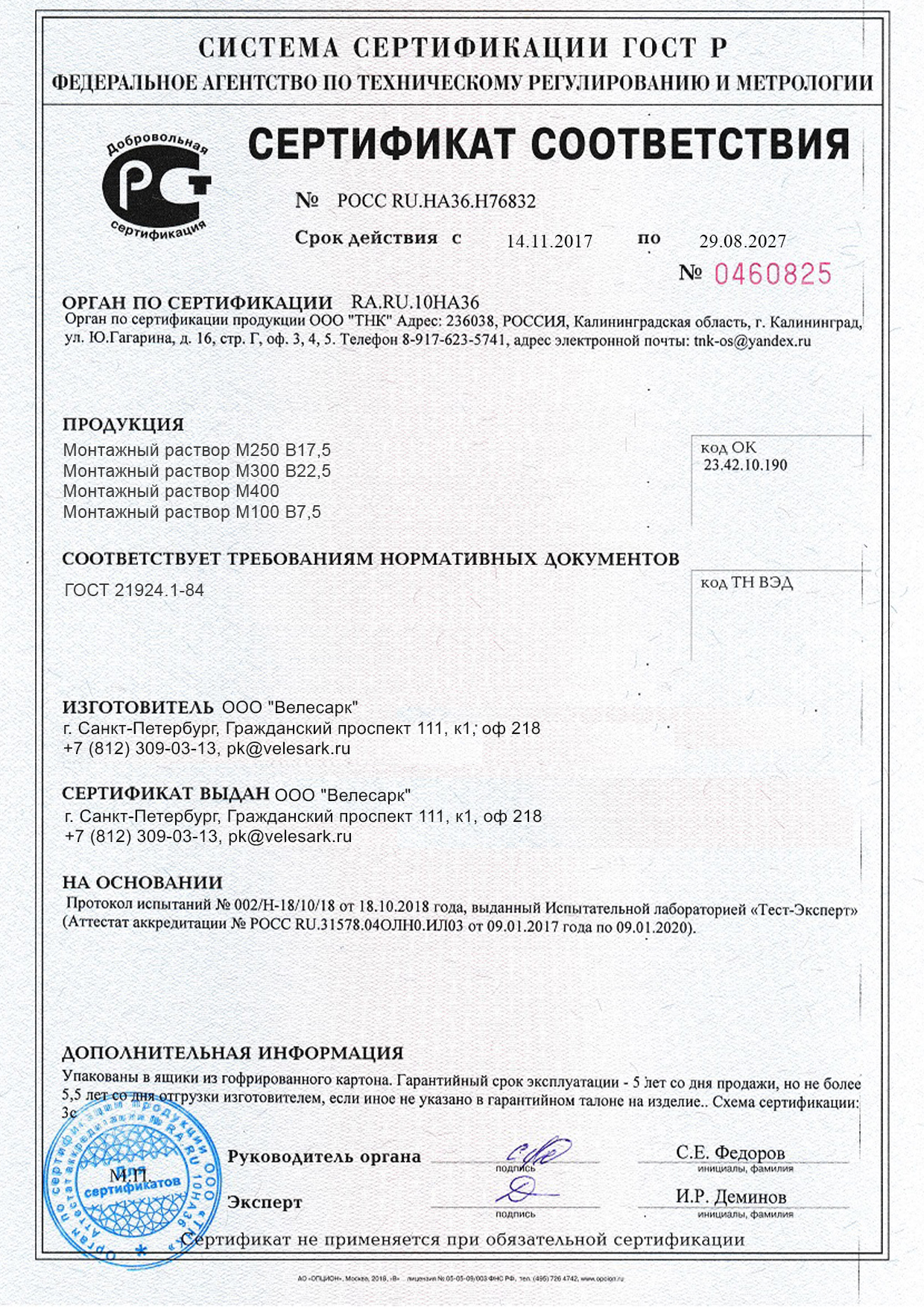 На каждую отгружаемую партию оформляется паспорт соответствия ГОСТу